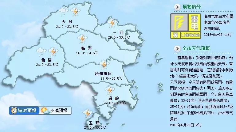 已发布雷电黄色预警和暴雨橙色预警,